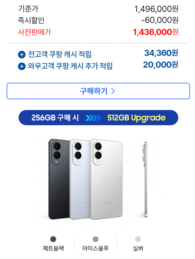 - 256GB 모델: 1,496,000원 → 쿠팡 할인가 1,436,000원 (4% 할인)